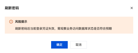 注意刷新密码后,当前登录凭证会失效,需要确认业务访问数据库状态是否符合预期。