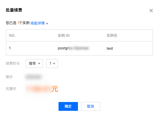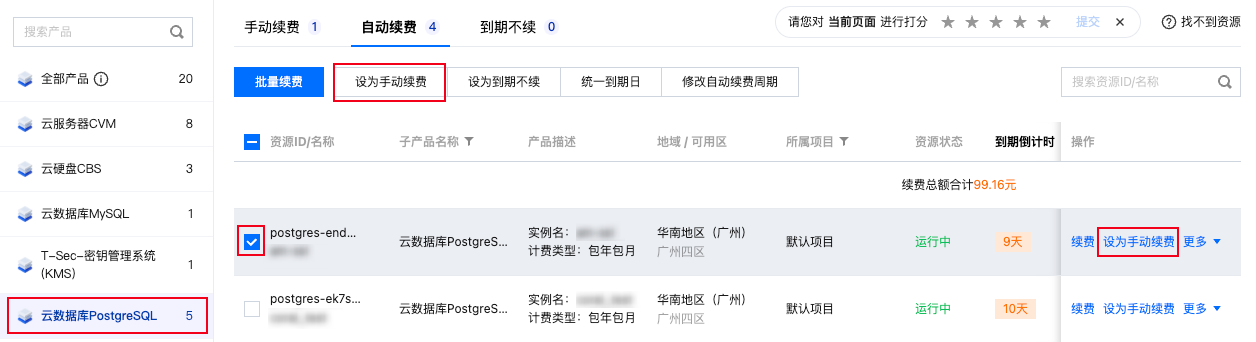 服务内容:云数据库 PostgreSQL 实例手动续费。