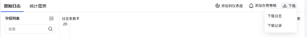 1. 在原始日志页面,单击右侧下载按钮,选择下载日志。