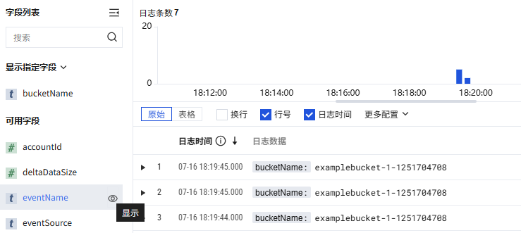 列表操作:在原始日志下,左侧面板快速找到该字段,单击显示或隐藏即可完成配置。