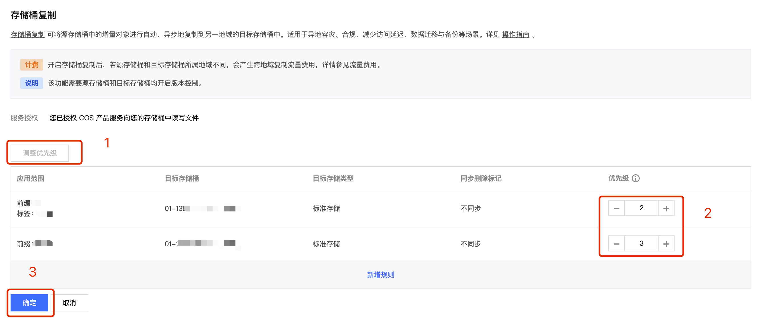 您可以通过以下方式调整存储桶复制规则的优先级。操作步骤如下: