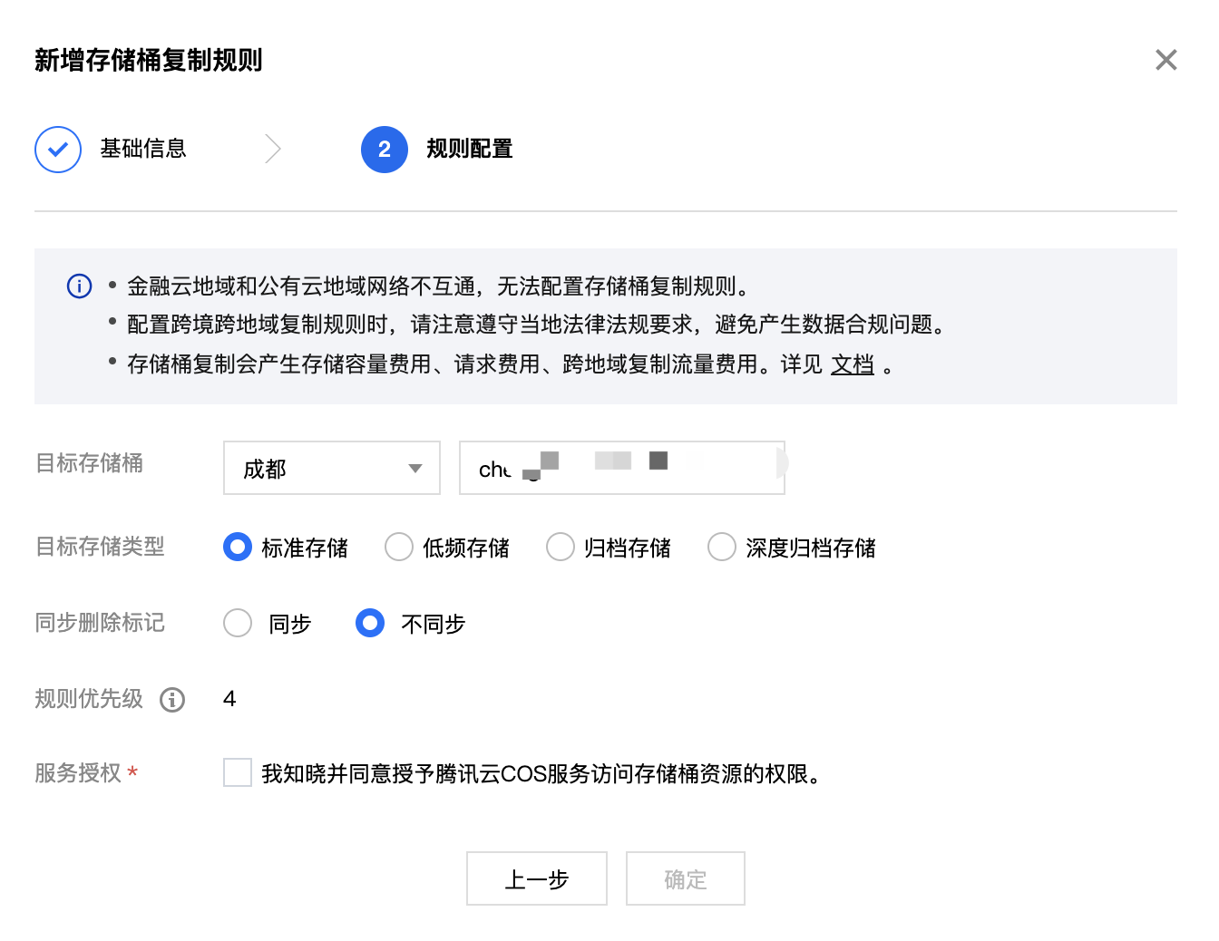 6. 信息确认无误并勾选授权后,单击确定,您即可看到存储桶复制规则。