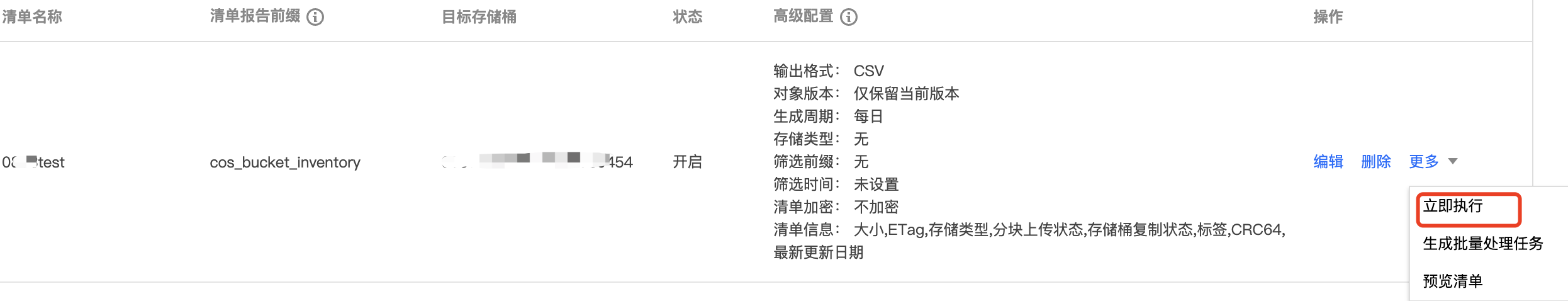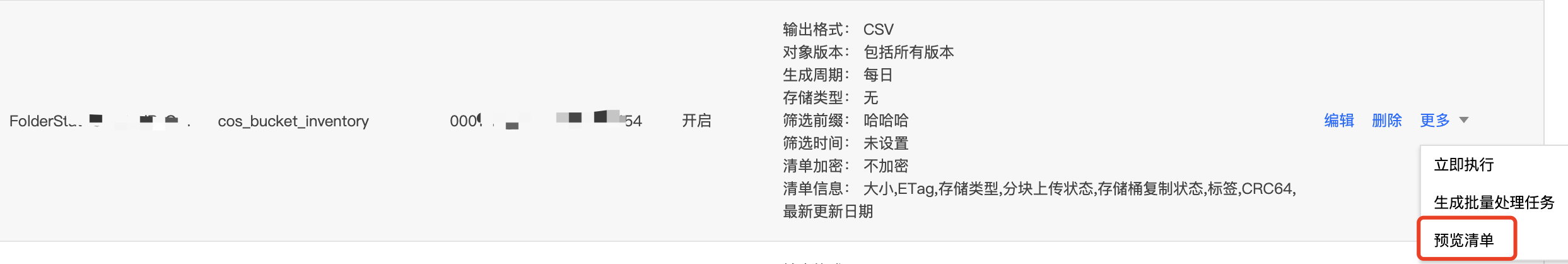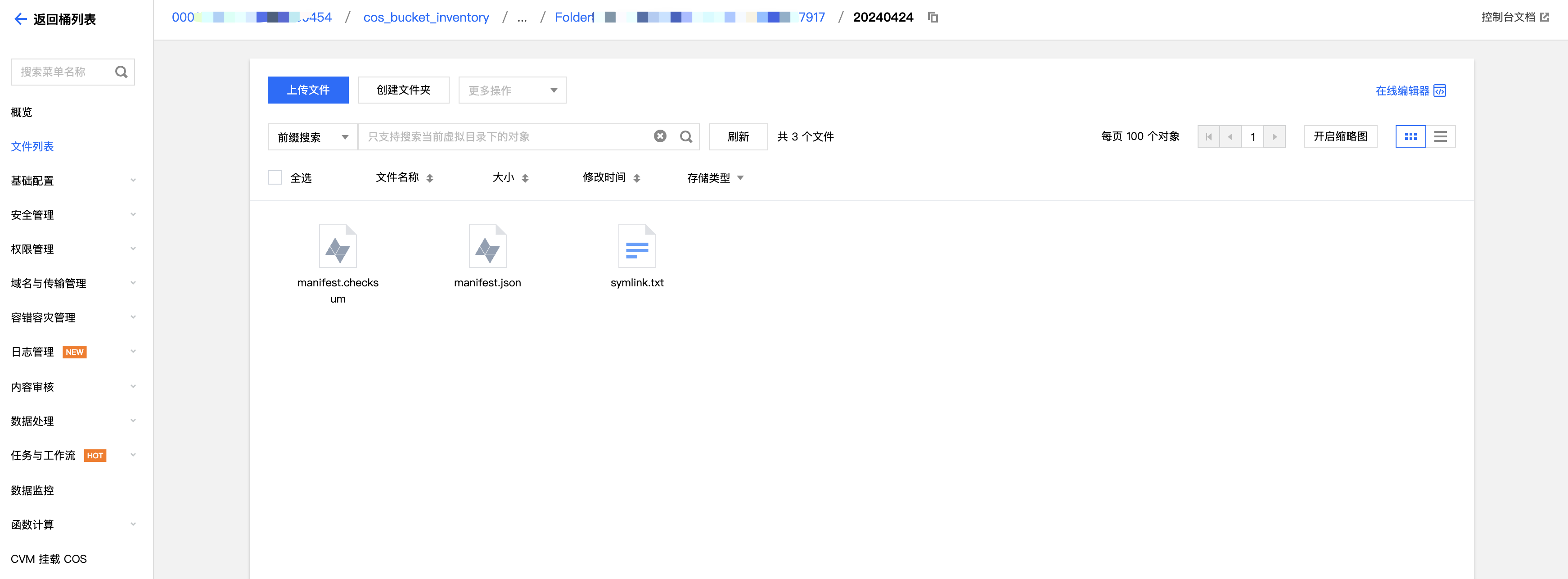 7. 创建成功后,清单将投递至指定路径,即5.1的清单报告生成路径。更多请参见 清单报告存储路径。