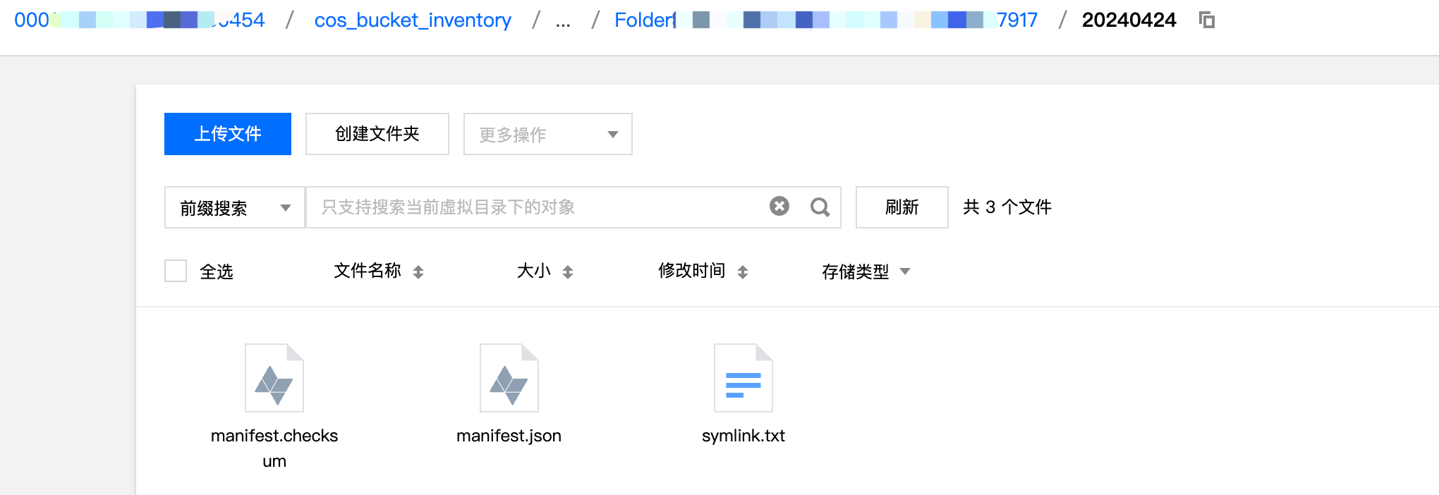 7. 创建成功后,清单将投递至指定路径,即5.1的清单报告生成路径。更多请参见 清单报告存储路径。