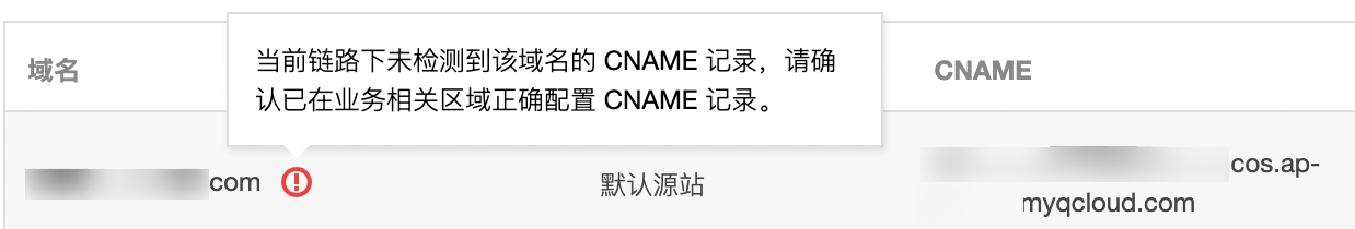 登录 对象存储控制台,查看存储桶自定义域名,如果域名的 CNAME 没有成功生效,会出现相应提示。