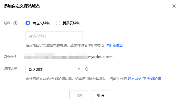 全球加速源站:如果您希望将自定义域名用作全球加速,请先为存储桶开启全球加速功能,然后选择全球加速源站。