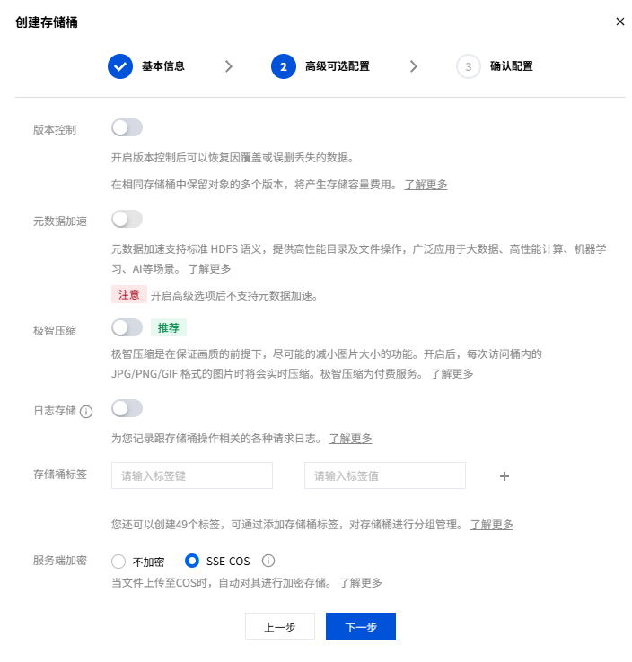 若您在创建存储桶时未设置加密,您可以按照下述步骤为存储桶设置加密。