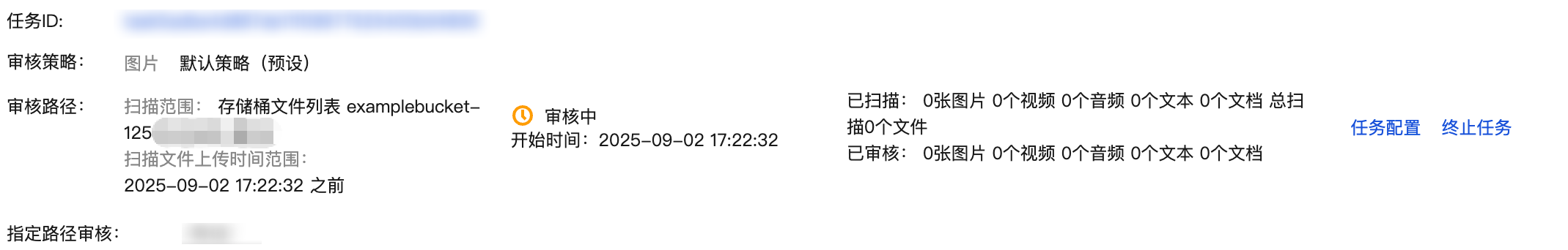 当任务状态为审核中,您可以查看任务配置或终止任务。