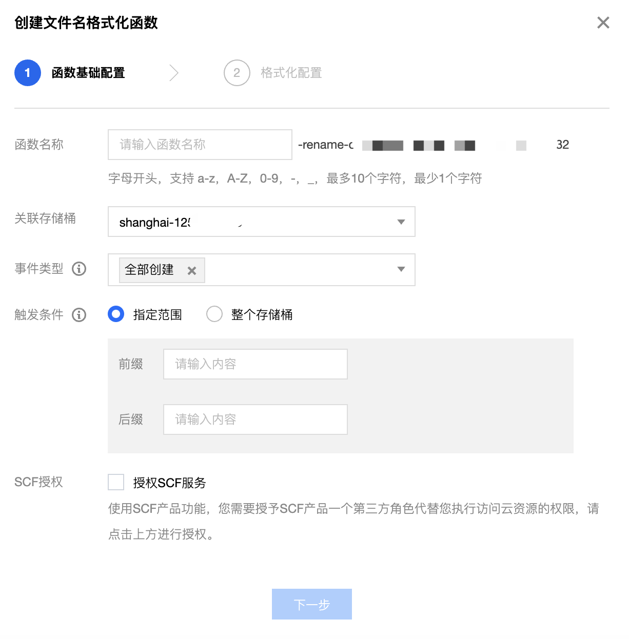 SCF 授权:格式化文件名需要授权云函数从您的存储桶中读取对应文件,并修改已存在的文件名称,需要勾选该项为 SCF 服务进行授权。
