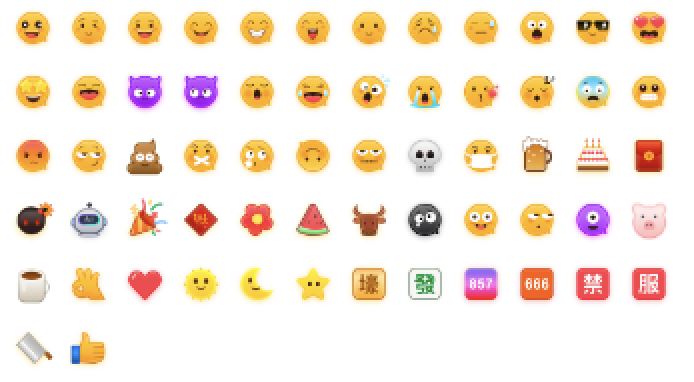 TUILiveKit 工程中不包含大表情元素切图,正式上线商用前请您替换为自己设计或拥有版权的其他表情包。下图所示默认的小黄脸表情包版权归腾讯云所有,可有偿授权使用,如果需要获得授权可 提交工单 联系我们。