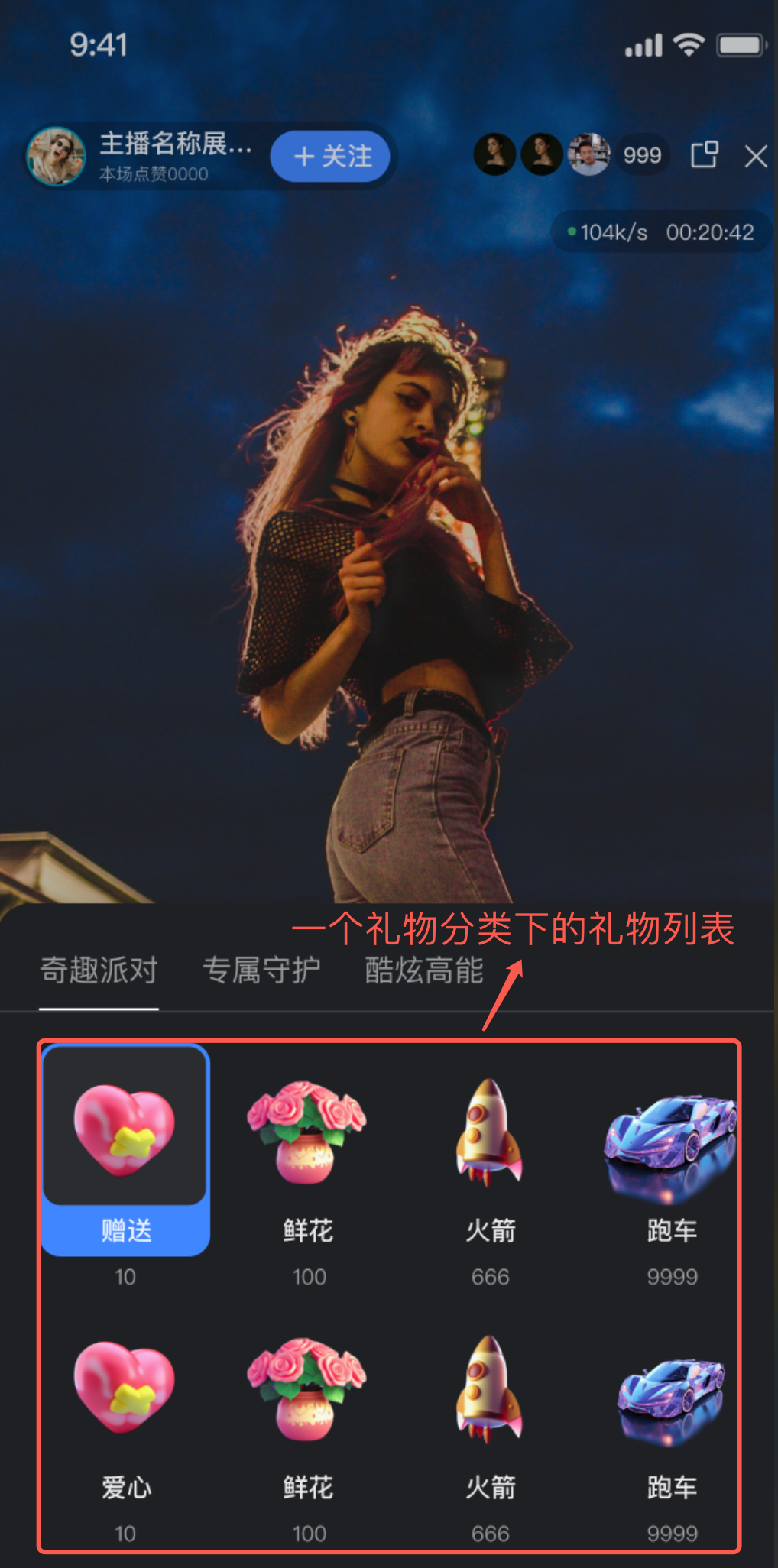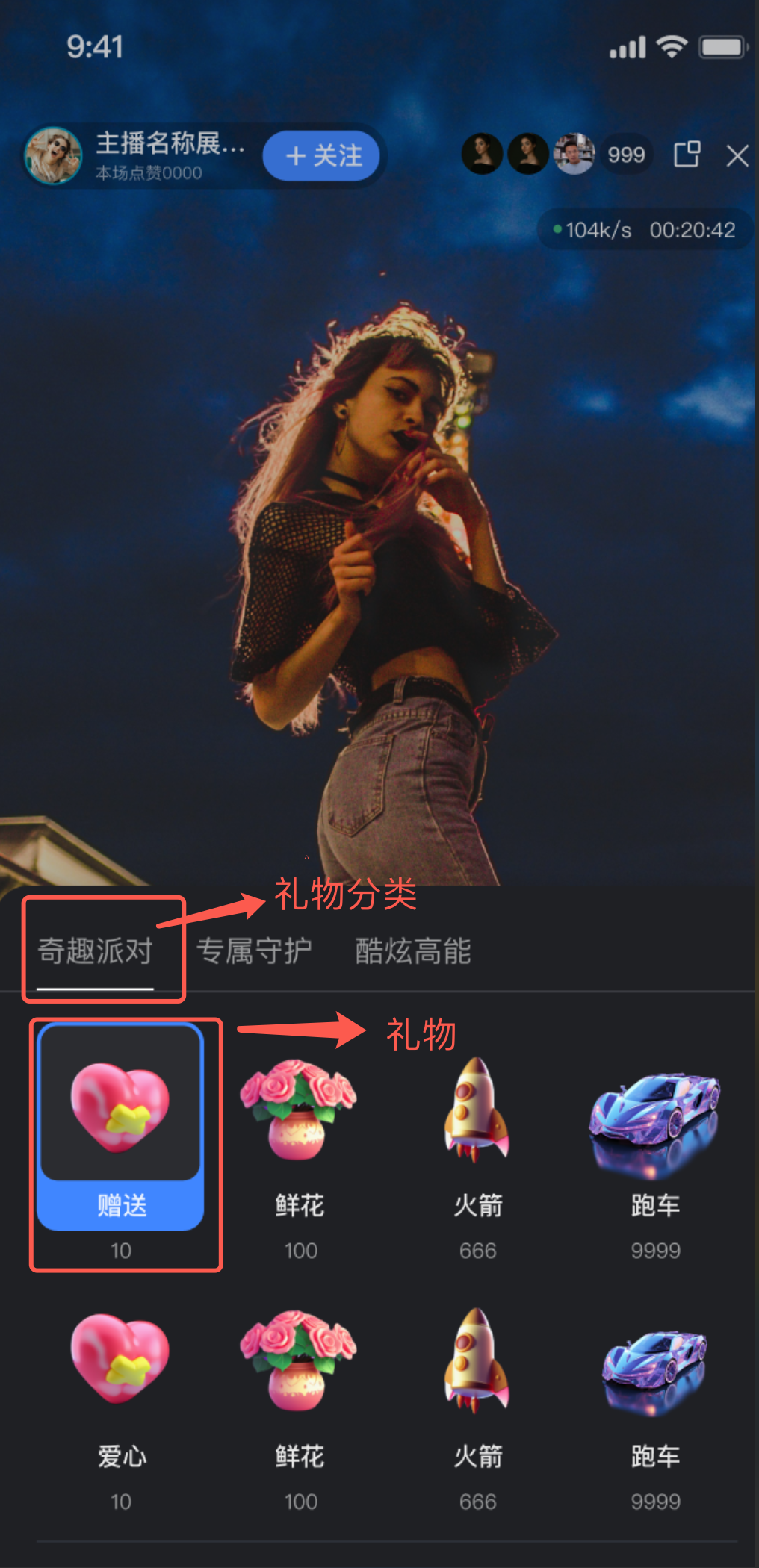 礼物:包括了 GiftId、礼物默认名称、礼物默认描述、礼物等级、礼物的虚拟货币价格、图标、自定义扩展信息。其中 GiftId 是礼物在系统中的唯一标识,是后续操作的对象。礼物的虚拟货币价格,用于礼物展示的“标价”,虚拟货币与实际支付金额对应关系需业务另外自行定义。