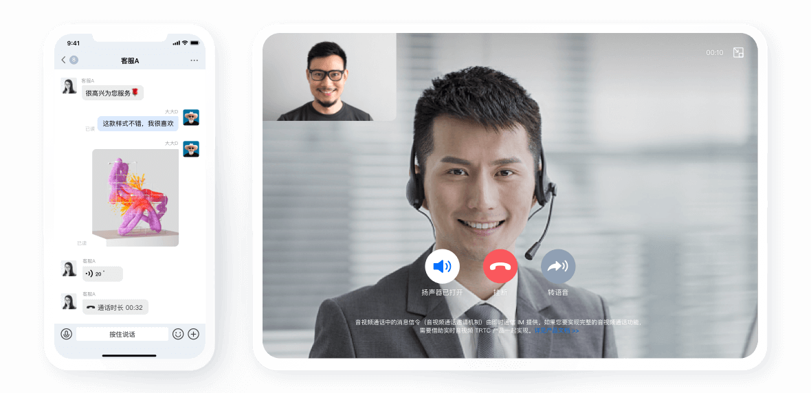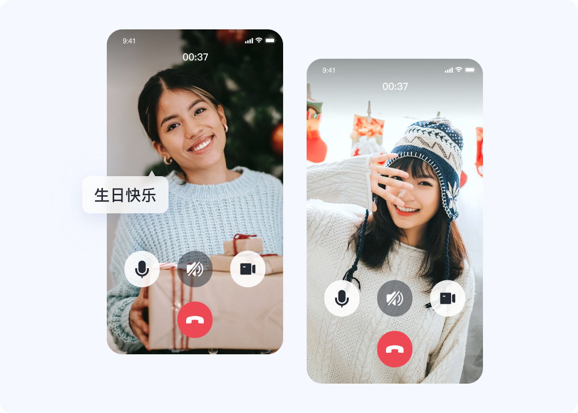 1v1 与群组通话:提供 1v1 和多人的音视频通话能力。