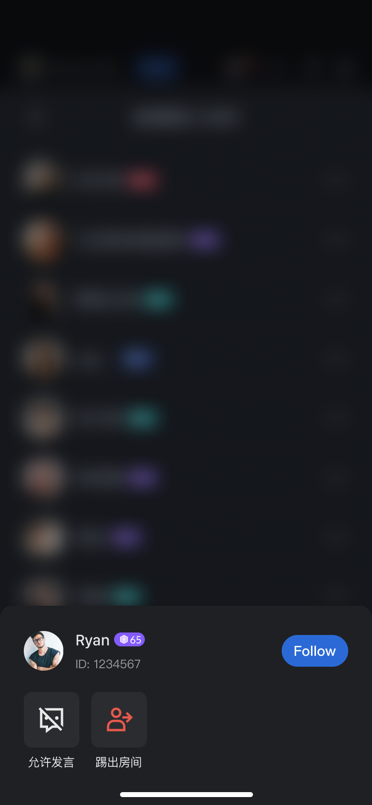 直播间管理: 支持在线用户列表展示,以及直播间内的禁言、踢人等多种管理操作。