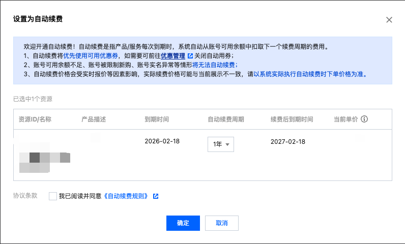 自动续费周期:1 年。