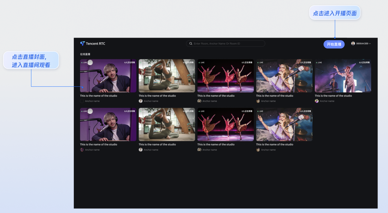 为了更好地体验直播功能的完整性,建议您使用不同的 userId 来模拟多个观众: