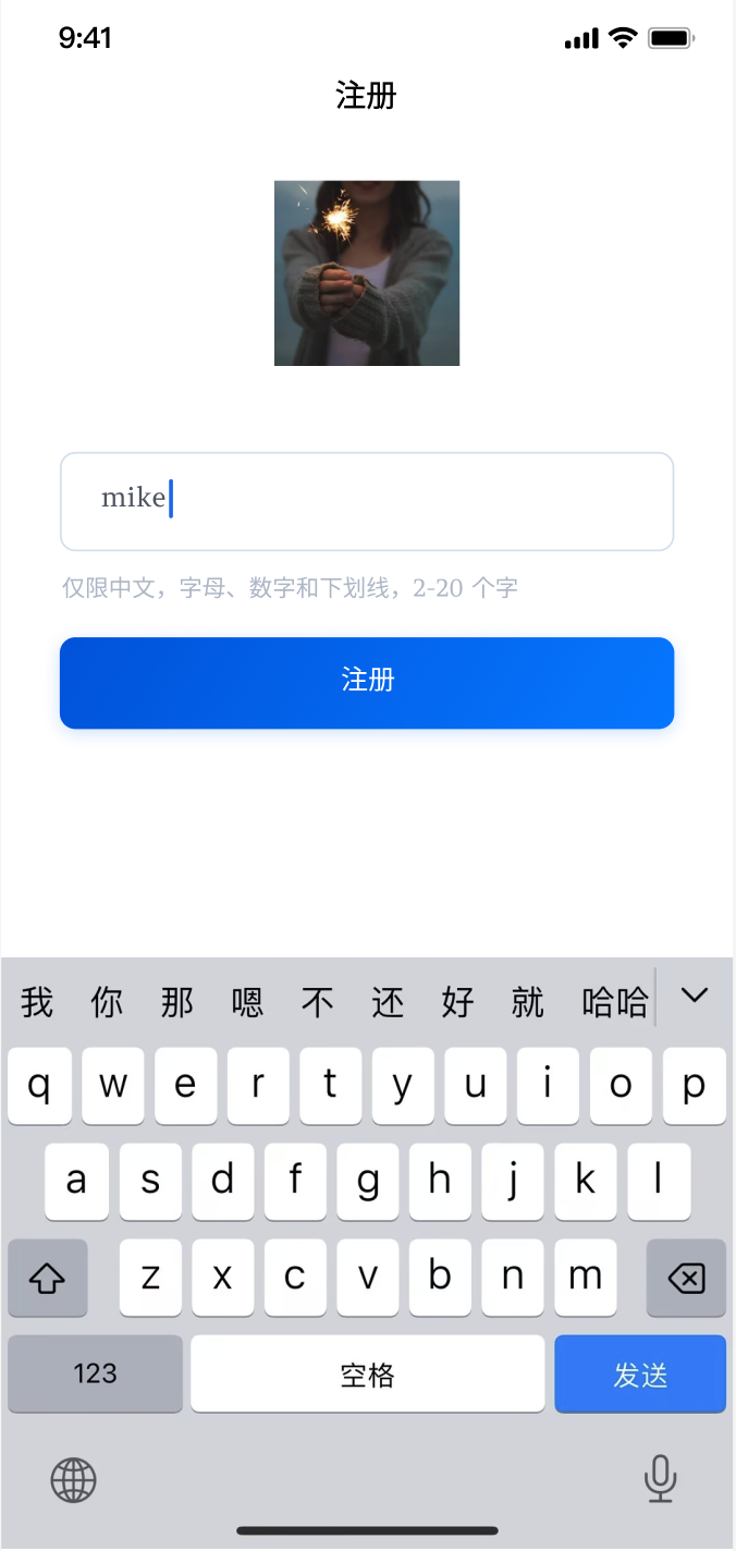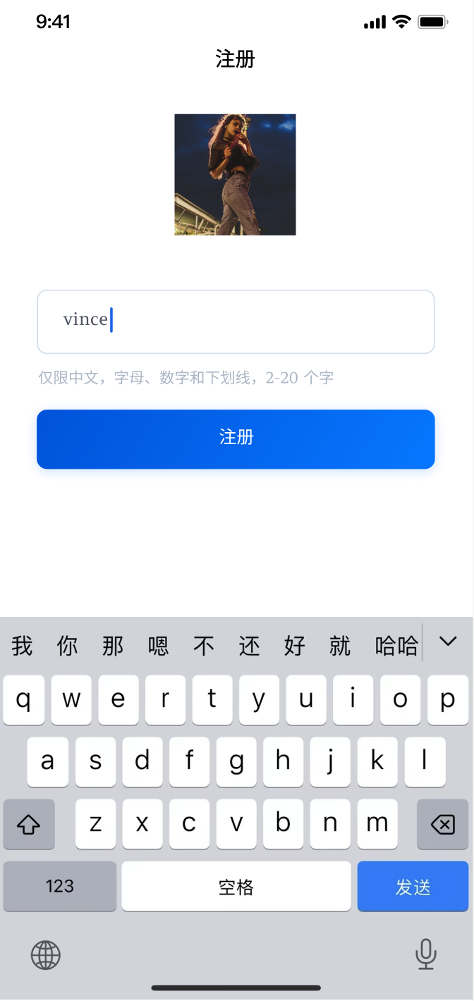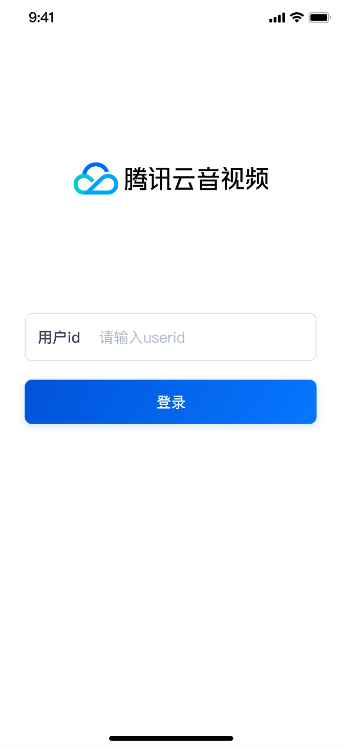 运行成功后,您需要先进行登录:在 用户id 处输入您的 UserID,如果该 UserID 未曾被使用,您将进入注册界面,可设置头像和昵称。