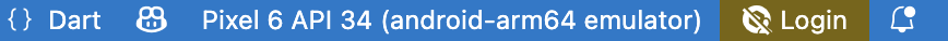 Flutter 扩展会自动选择上次连接的设备。然而,如果您有多个设备/模拟器连接,点击状态栏的 device 查看屏幕顶部的选择列表。选择您要用来运行或调试的设备。
