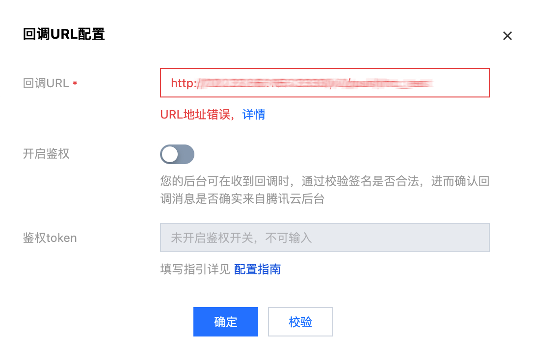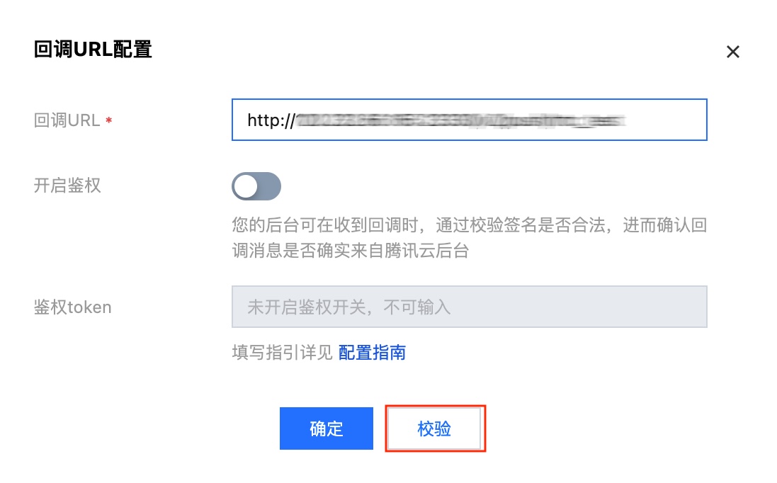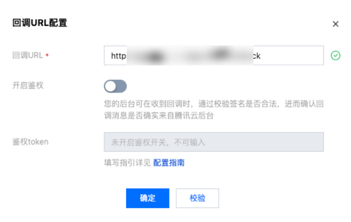 3. 输入回调URL后,单击校验即可进行回调地址URL校验。