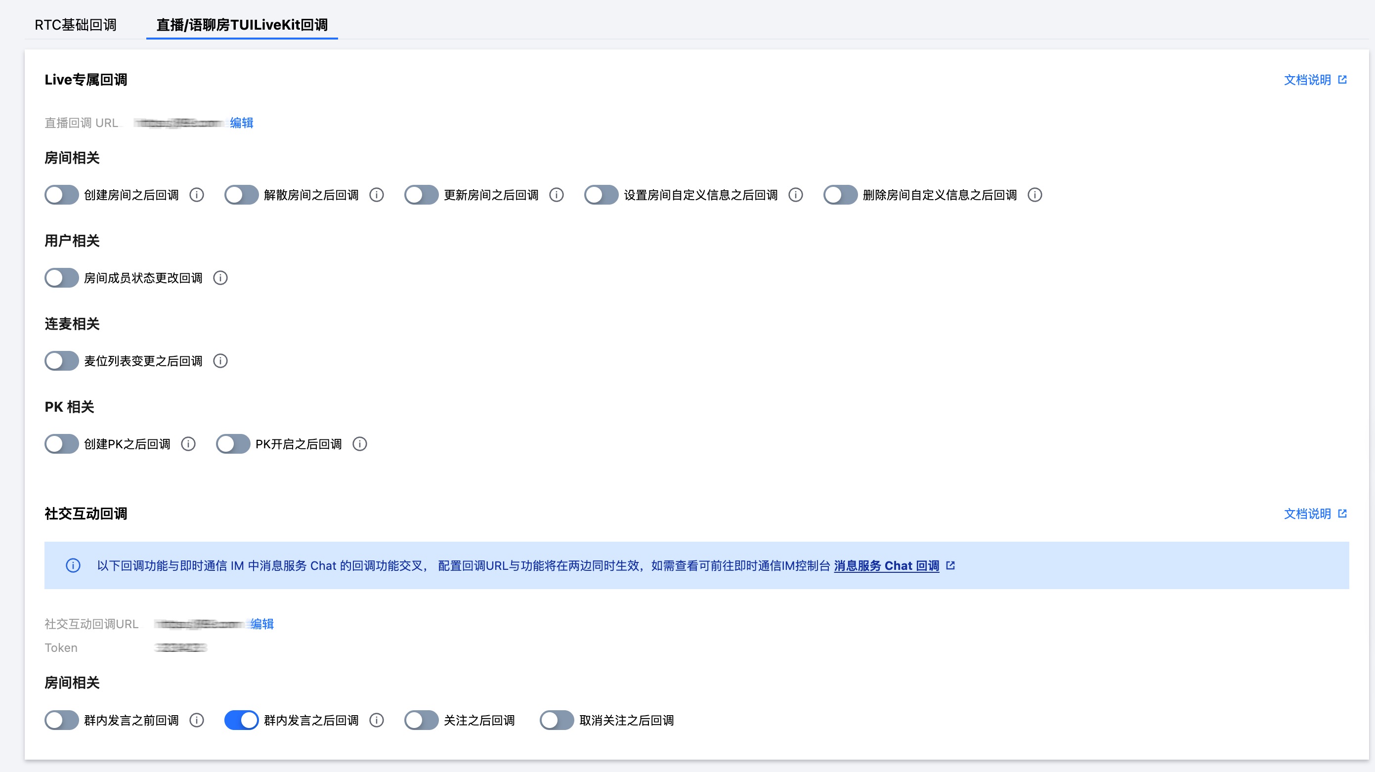 1. 直播/语聊房TUILiveKit回调页面,可直接开启/关闭Live专属回调区域的回调开关
