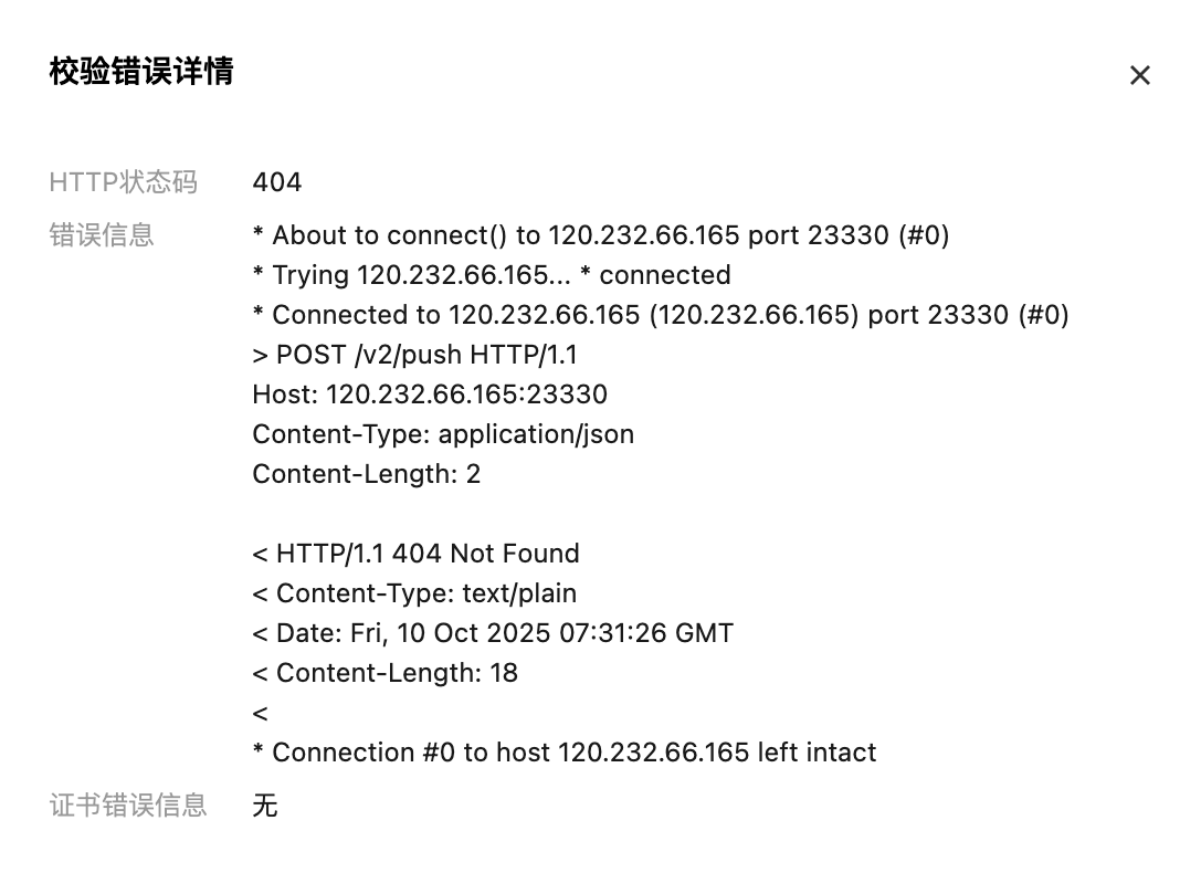 若地址错误,输入框下方会显示URL地址错误,您可单击详情,查看校验错误详情