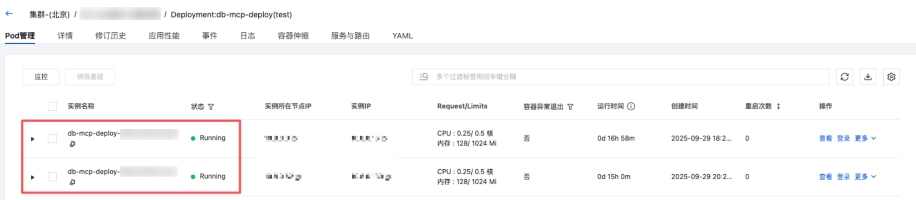 2. 确认 Pod 状态为 Running,表示 MCP Server 已正常运行。