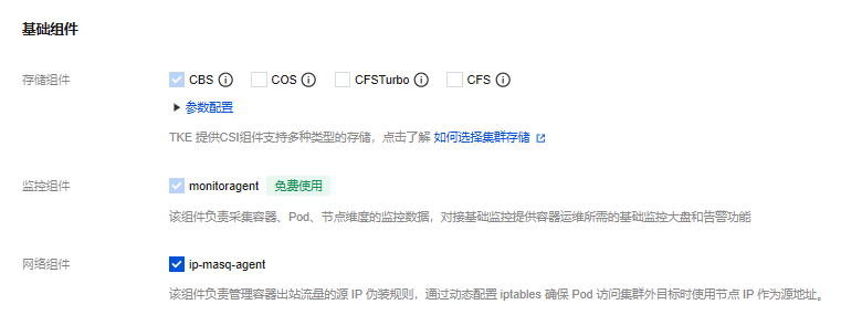 网络组件 | ip-masq-agent 组件负责管理容器出站流量的源 IP 伪装规则,通过动态配置 iptables 确保 Pod 访问集群外目标时使用节点 IP 作为源地址。 |