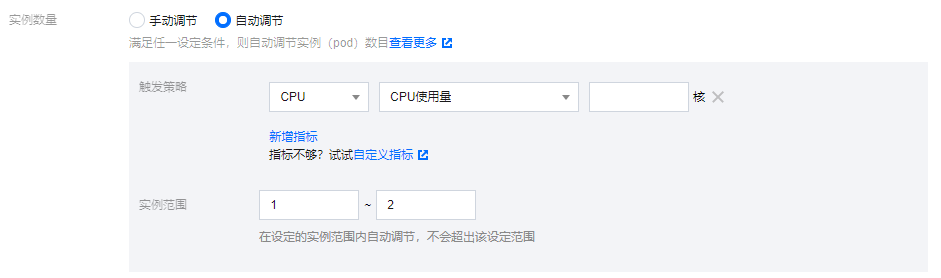 实例范围:请根据实际需求进行选择,实例数量会在设定的范围内自动调节,不会超出该设定范围。