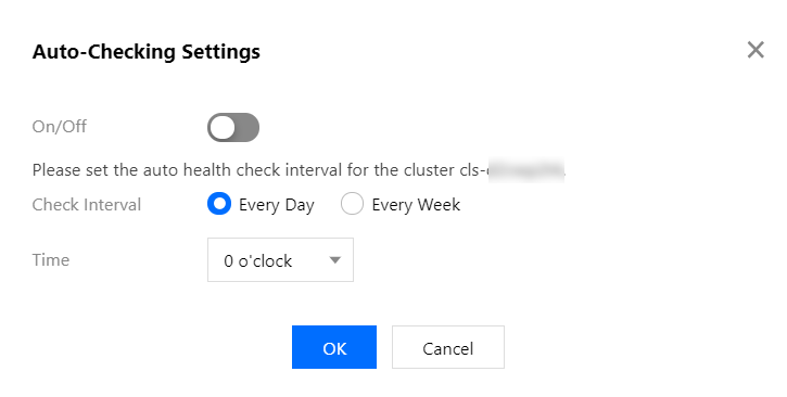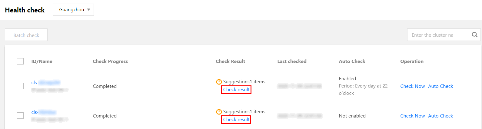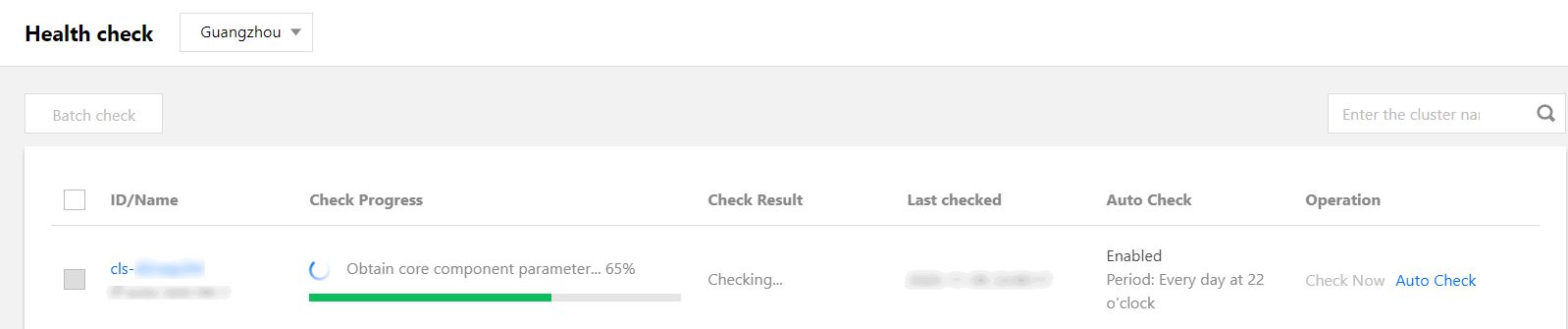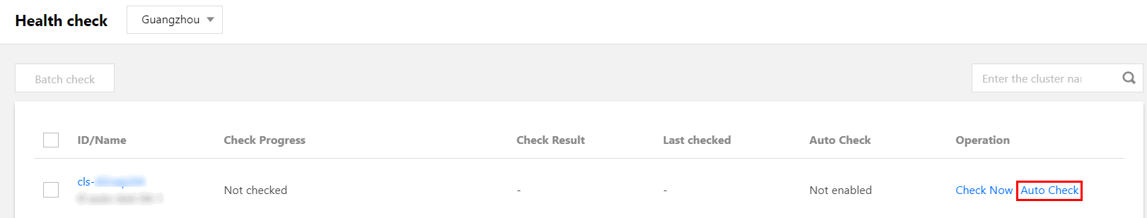 Auto-check: Suitable for clusters that require periodic checks. Select the cluster that needs periodic checks and click Auto-check, as shown below: