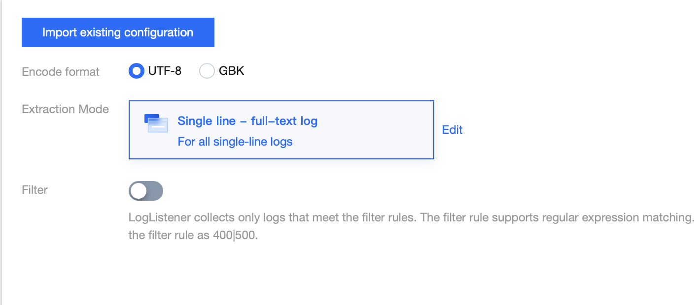 Enable filters and configure rules. Once enabled, only logs that match the filter rules will be collected. "Key" supports full matching, and the filter rules support regex matching, such as collecting logs with "ErrorCode = 404" only.