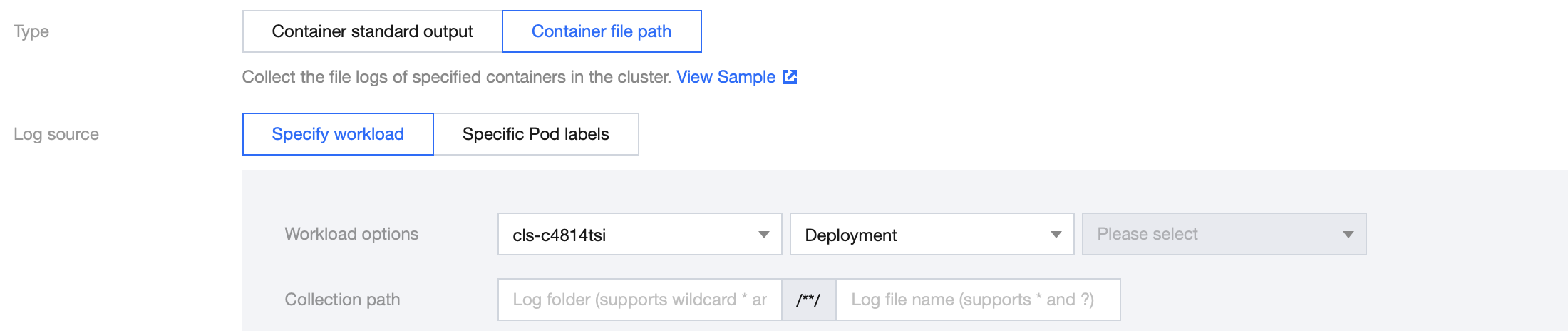 Select Container File Path as the collection type and configure the log source according to your requirements, as shown in the figure below: