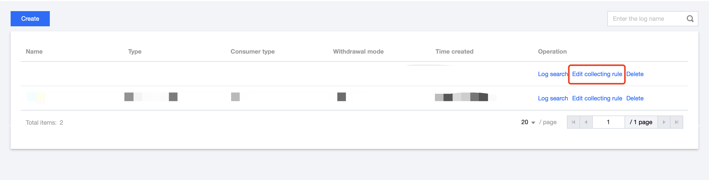 2. In the Log Rules page, select the log rule you want to update and click Edit Collecting Rule on the right side, as shown below: