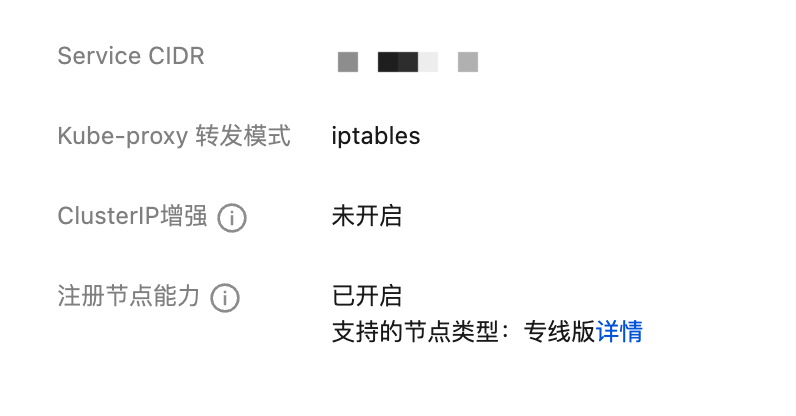 6. 单击“支持的节点类型:专线版”右侧的详情,可以查看专线版开启细节。如下图所示:
