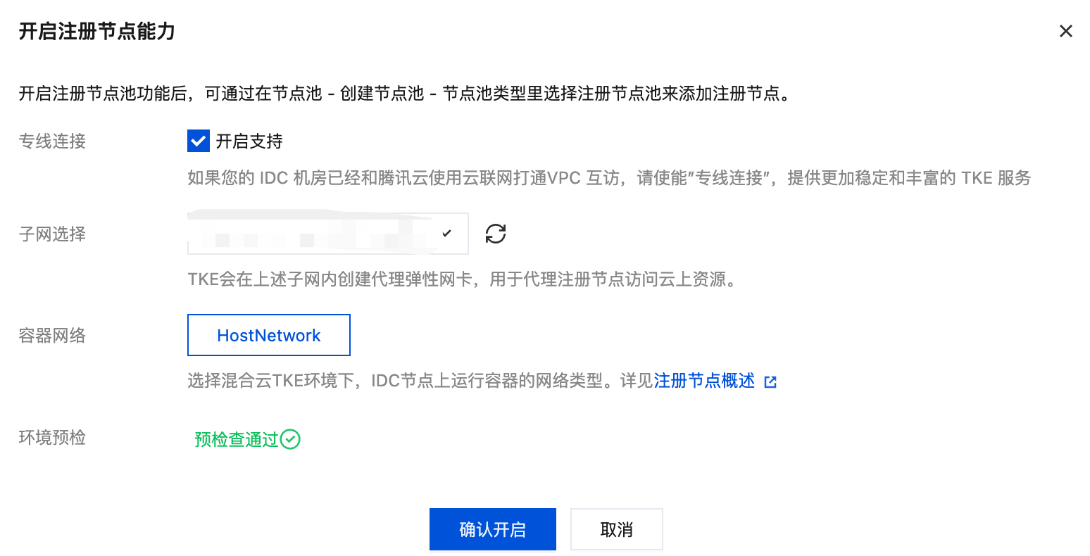 对于 TKE 集群不同的网络类型,开启注册节点功能支持的方式有所不同,具体开启步骤参考如下: