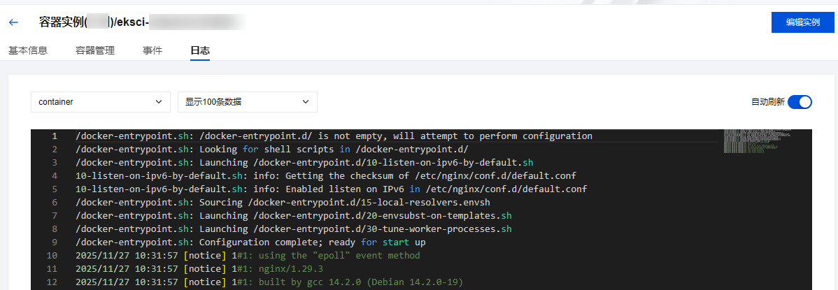安全组 | 安全组具有防火墙的功能,可限制容器实例的网络通信,默认为 default。 |