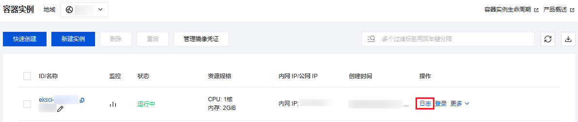 1. 登录 容器实例控制台,在容器实例页面,单击快速创建。