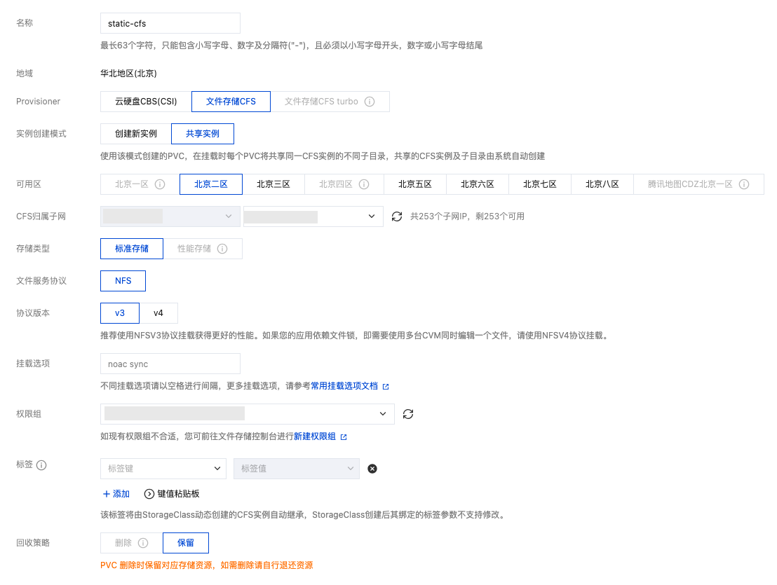 2. 使用 CFS 中新建的 /models/Stable-diffusion 目录以及已创建的 StorageClass,静态创建 PV/PVC。