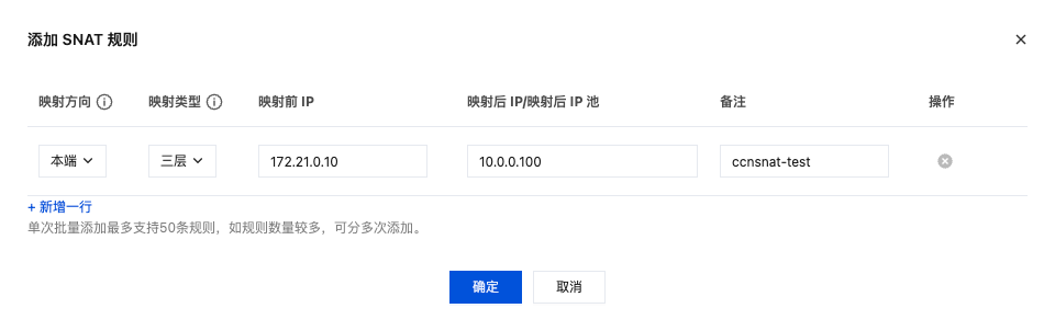 操作 | 可选择删除当前添加的 SNAT 规则。 |