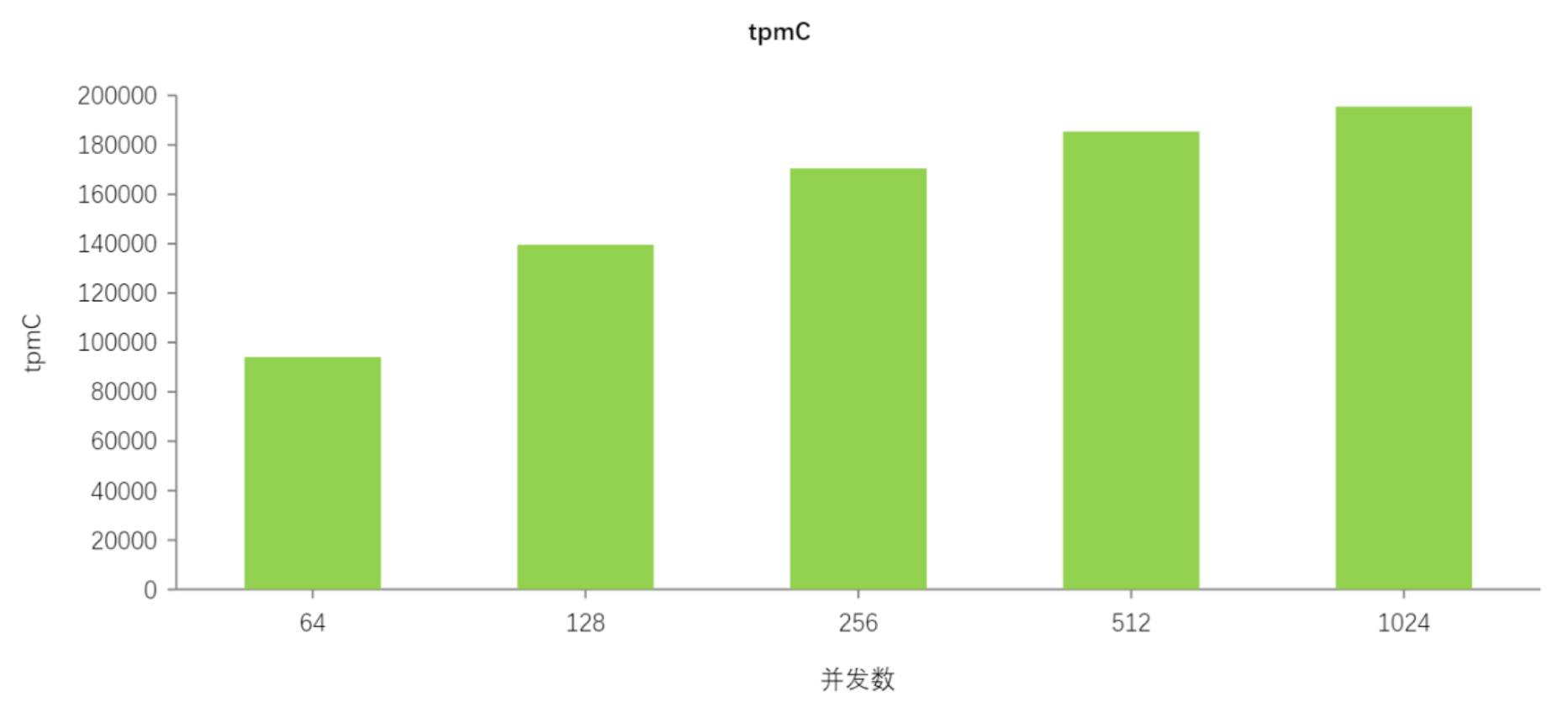 TPC-C 是业界常用的一套 Benchmark,由 TPC 委员会制定发布,用于评测数据库的联机交易处理(偏向 OLTP)能力。主要涉及10张表,包含了 NewOrder(新订单的生成)、Payment(订单付款)、OrderStatus(最近订单查询)、Delivery(配送)和 StockLevel(库存缺货状态分析)等五类业务事务模型。TPC-C 使用 tpmC 值(Transactions per Minute)来衡量系统最大有效吞吐量(MQTh,Max Qualified Throughput),其中Transactions 以 NewOrder Transaction 为准,即最终衡量单位为每分钟处理的新订单数。