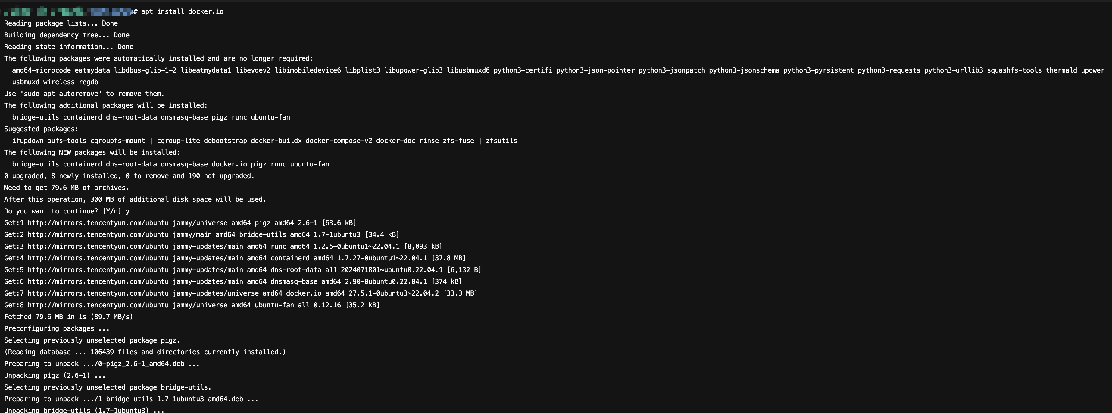 apt install docker.io命令,安装Docker软件包,成功结果如下图: