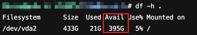 free -h命令查看内存剩余空间,运行df -h .命令查看硬盘剩余空间,成功结果如下图: