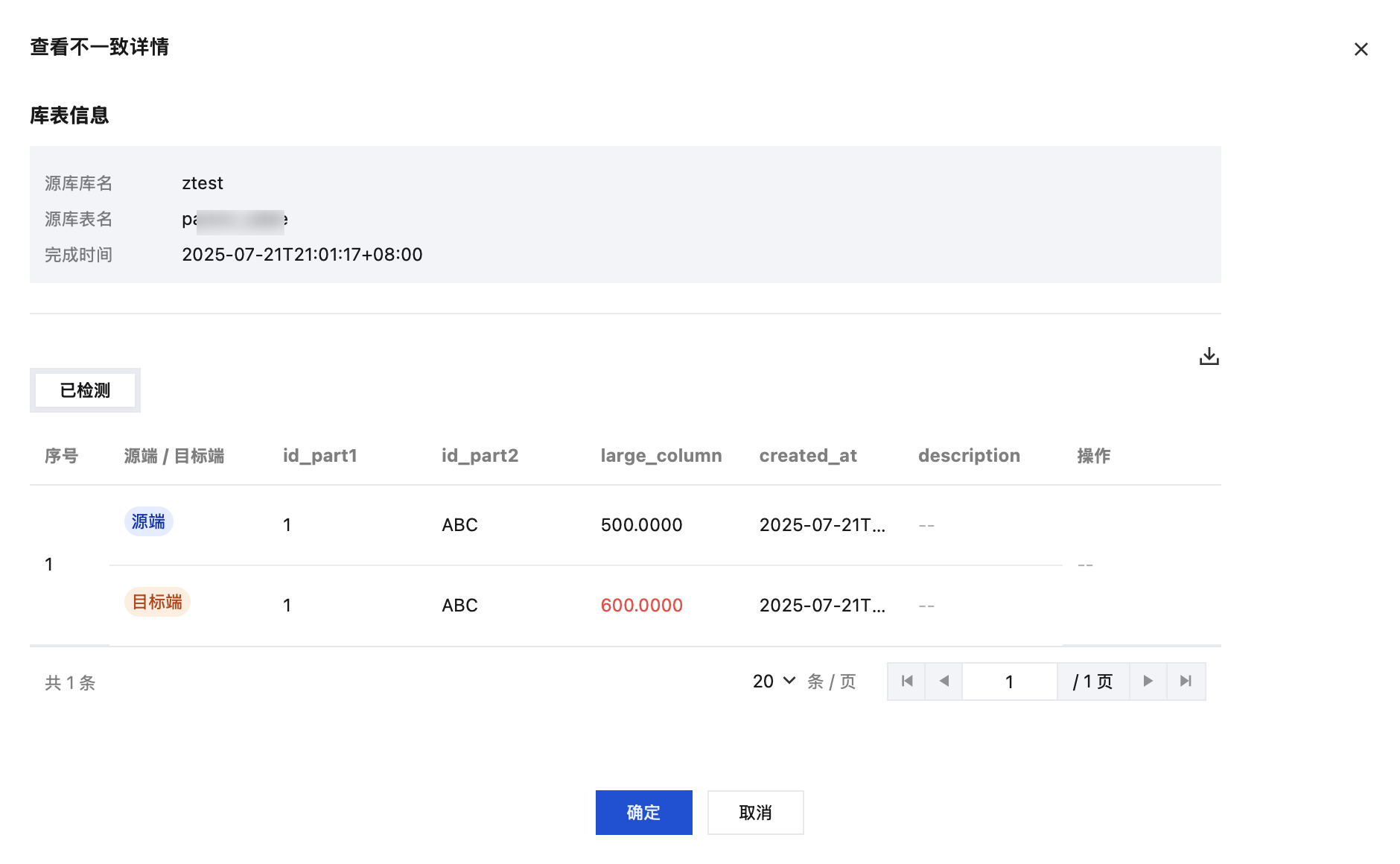 3. 当前校验任务对 DDL 操作不感知,如果在同步过程中,用户对源库做了 DDL 操作,可能会出现校验结果不一致,需要用户重新发起校验任务才能得到准确的对比结果。