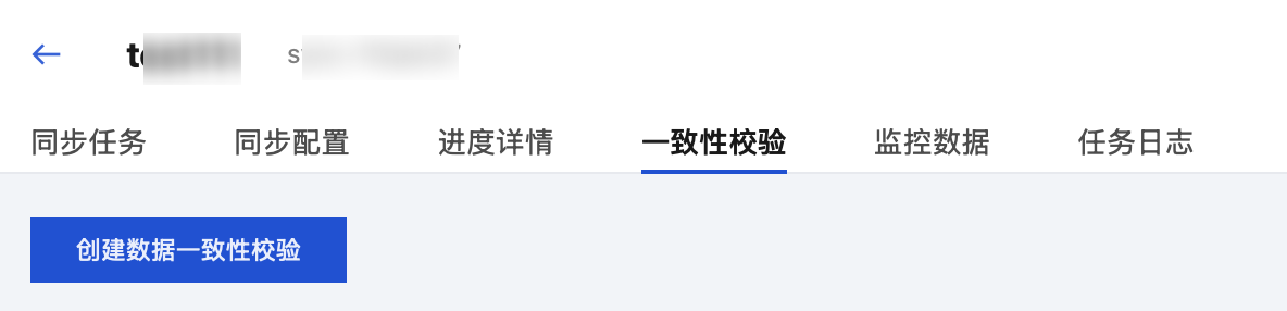 数据一致性校验需要在同步任务步骤进行到同步增量时,才可以创建。如果界面按钮呈灰色,则 DTS 任务状态不满足条件,如任务未进行到同步增量步骤、任务失败、任务终止。