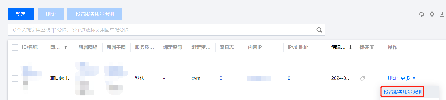 3. 找到需要设置服务质量级别的弹性网卡所在行,单击操作列的更多 > 设置服务质量级别。