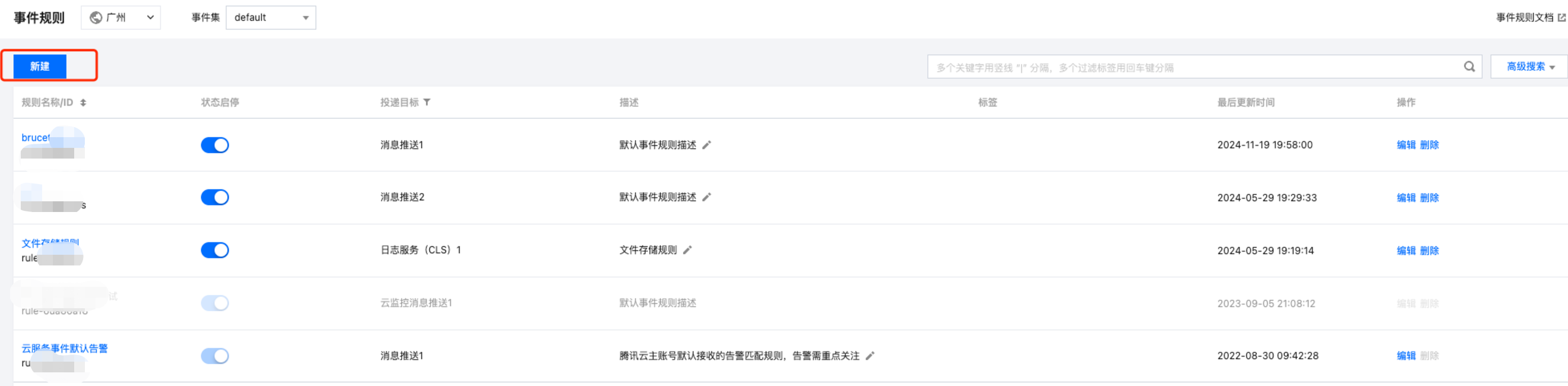 1. 登录 腾讯云可观测平台 > 事件总线 > 事件规则 页面。