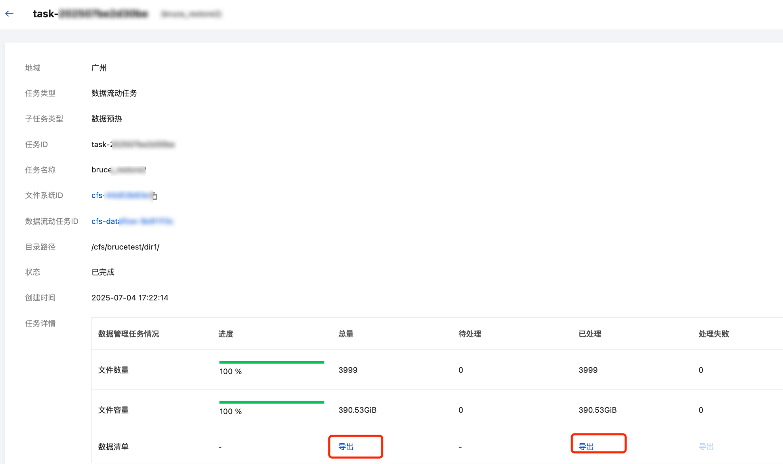 元数据导入任务,因数据量通常较大,为避免产生清单的时间过长。仅支持查看文件总数和失败总数。清单导出上,仅支持导出失败任务列表,不支持导出总量和已处理列表。