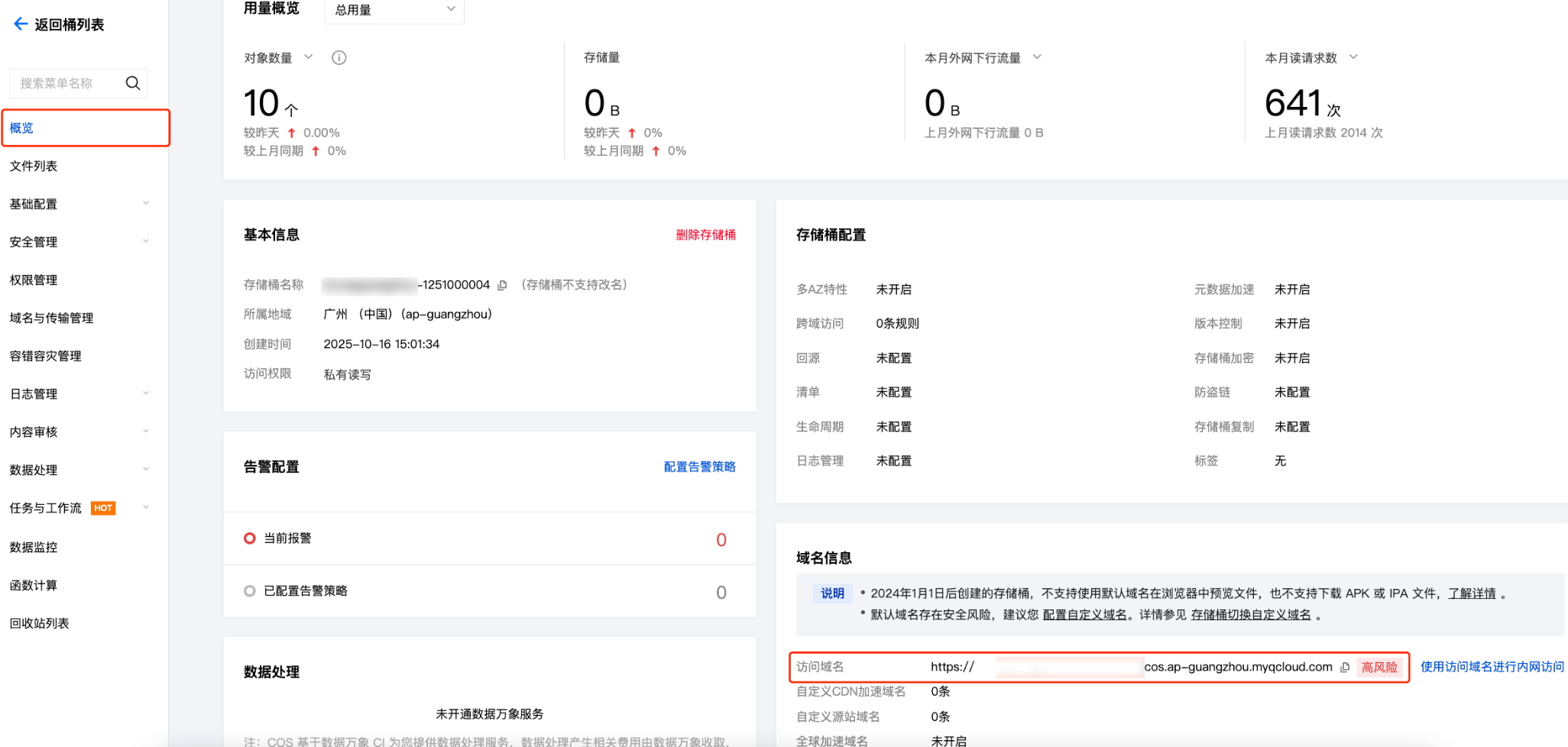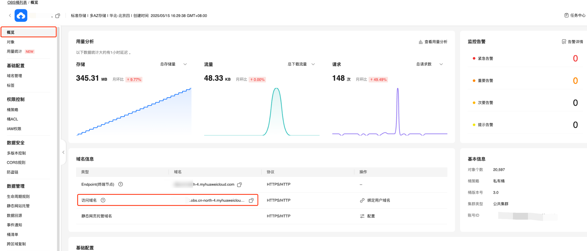 源端存储地址 | 可直接填写对象存储域名,https://开头,获取方式可在对象存储的概览页获取。 腾讯云: ![]() 阿里云: ![]() 华为云: ![]() |