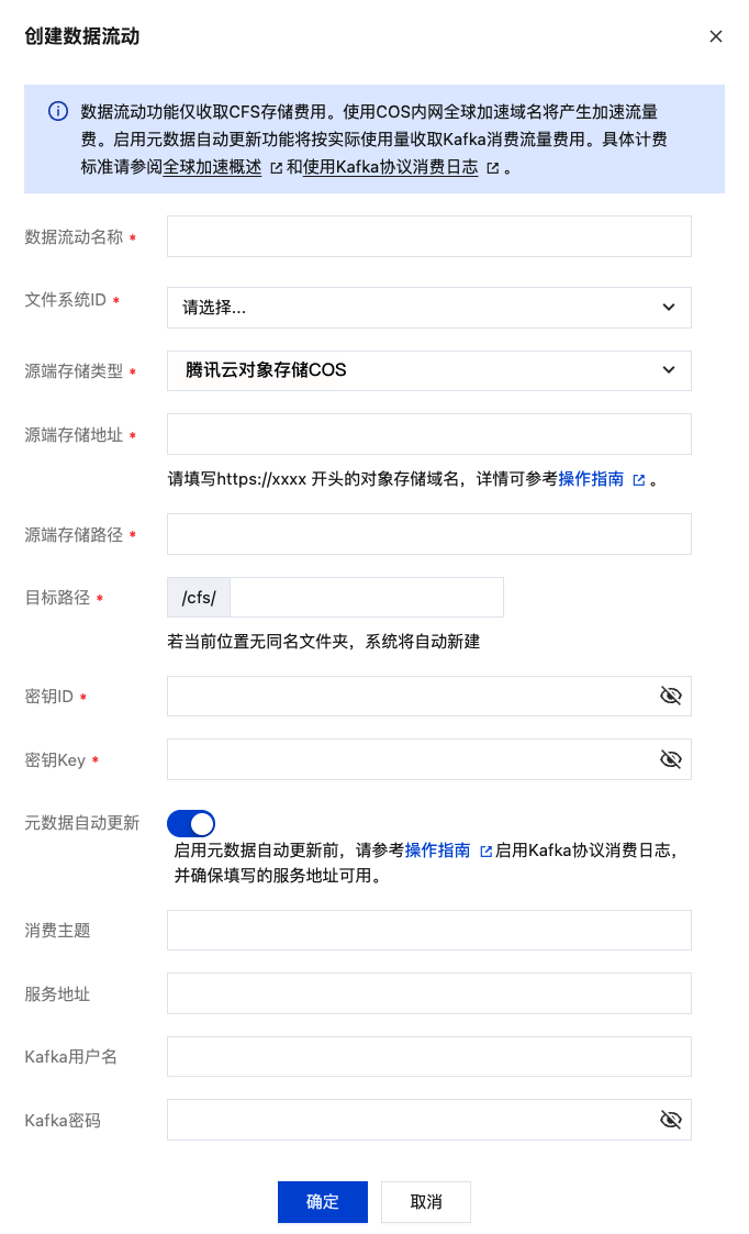 源端存储类型 | 根据实际需要,选择不同类型的对象存储。目前支持腾讯云、阿里云、华为云。 腾讯云同地域使用内网传输,跨地域使用公网。阿里云、华为云默认会基于公网传输。 |