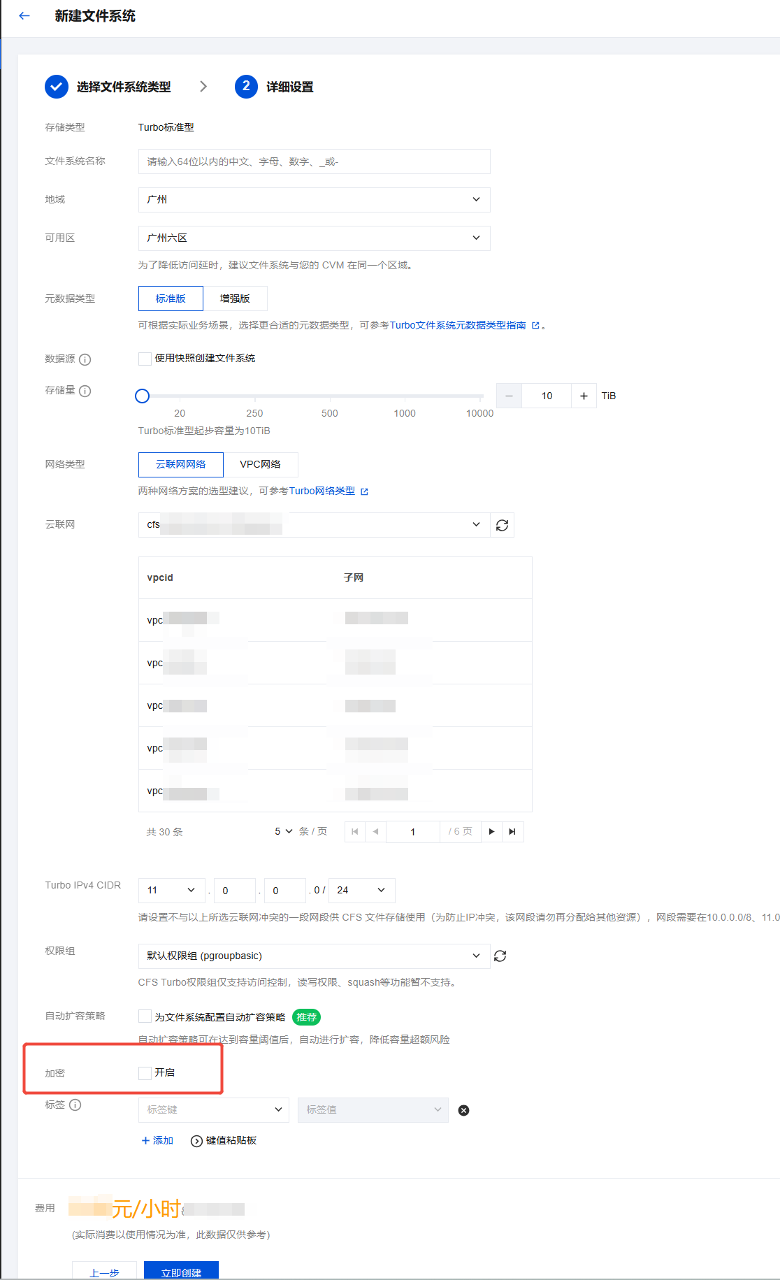 云文件存储加密功能仅支持 Turbo 系列文件存储。