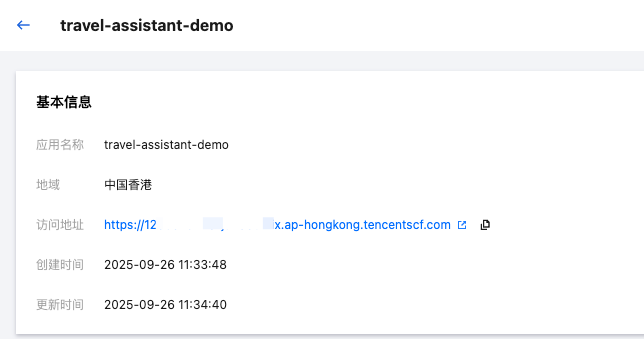 9. 应用部署完成后,在应用详情页面,可以获得访问地址。如果需要在浏览器访问,可以配置 自定义域名。