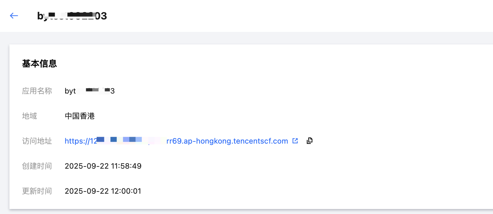 9. 应用部署完成后,在应用详情页面,可以获得访问地址。调用时,基于应用的 Transport Type,在访问地址后增加